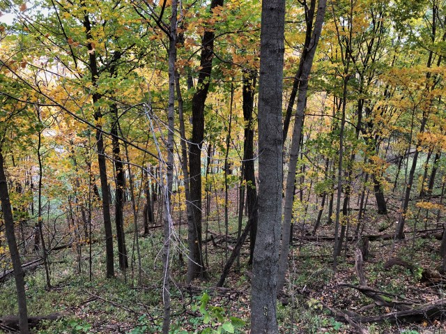 That’s when I caught some furtive movement on the perimeter of my vision, turned to my left, saw a heavy-antlered whitetail buck climb out of a draw below me, and stride onto the old logging road that ran along a terrace. Centering him in the scope (it was an easy 50-yard shot) I remember telling myself, “Do not shoot this deer, do NOT shoot this deer, DO NOT shoot this deer!” He paused amid a leaf-covered, golden-floored gap under the maples, and looked up at me.
