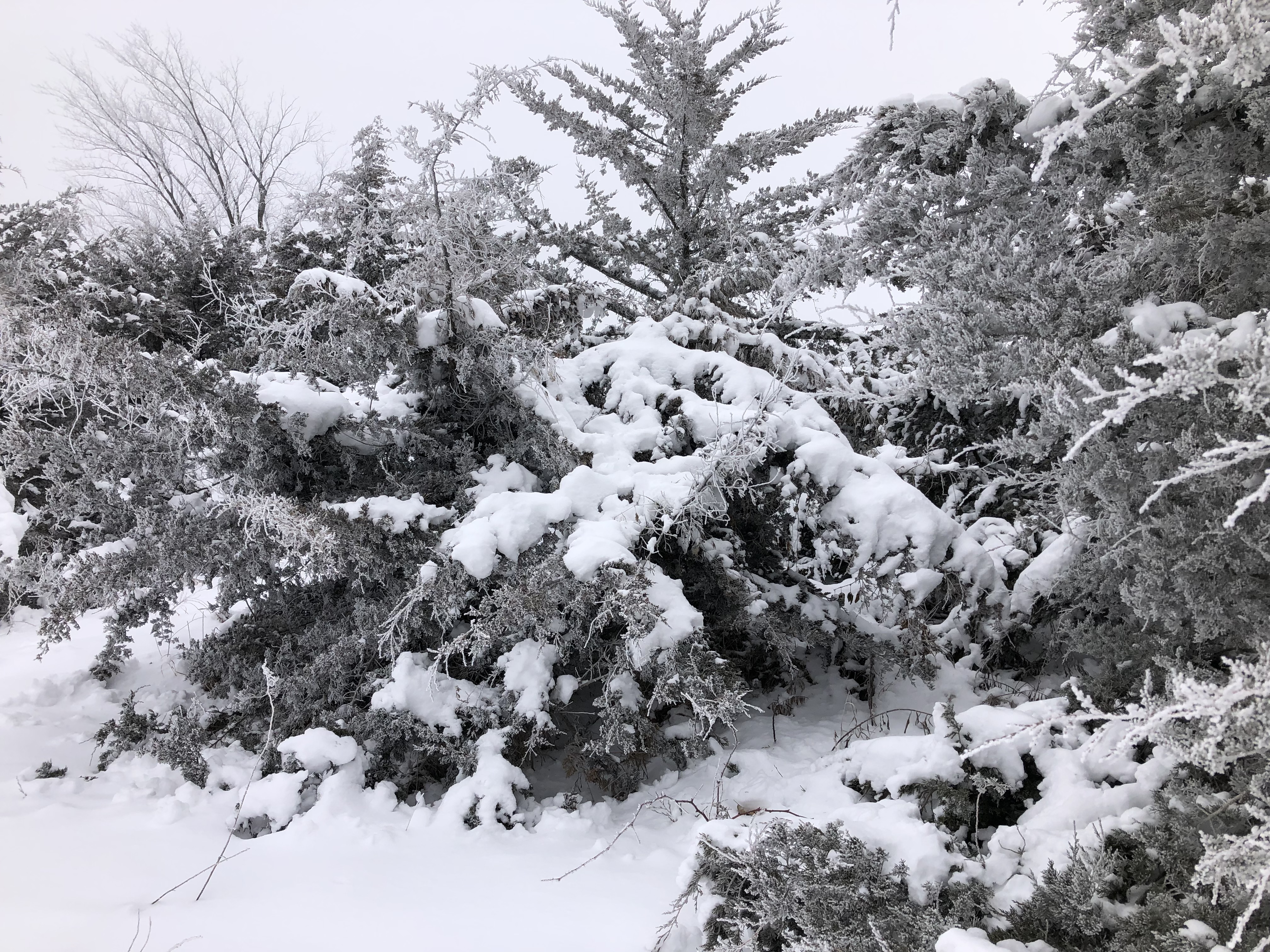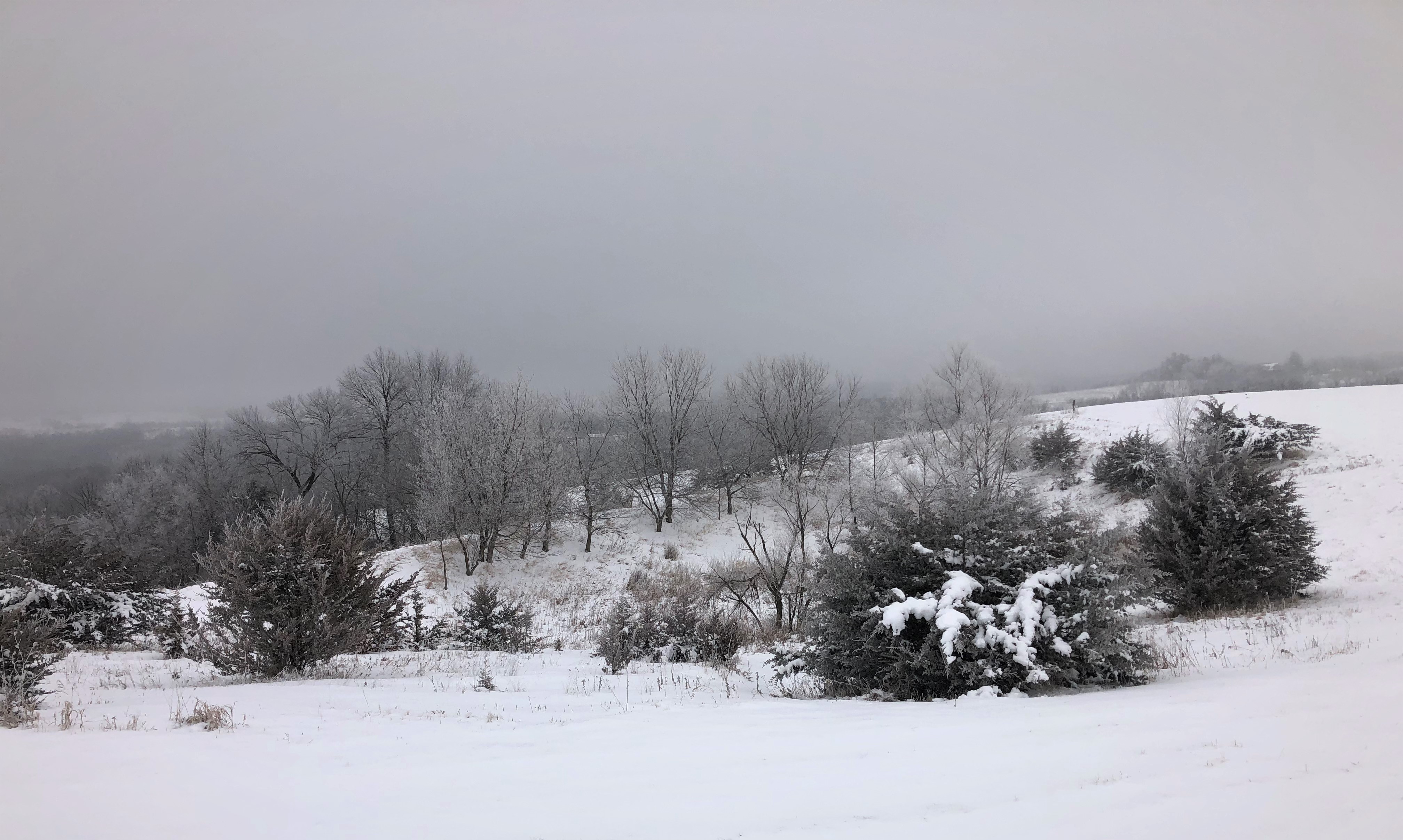 A foggy, frozen January day in the North Country. Overcast skies, no wind, 14 degrees, a perfect morning for snowshoeing. Photos only; no distracting text.